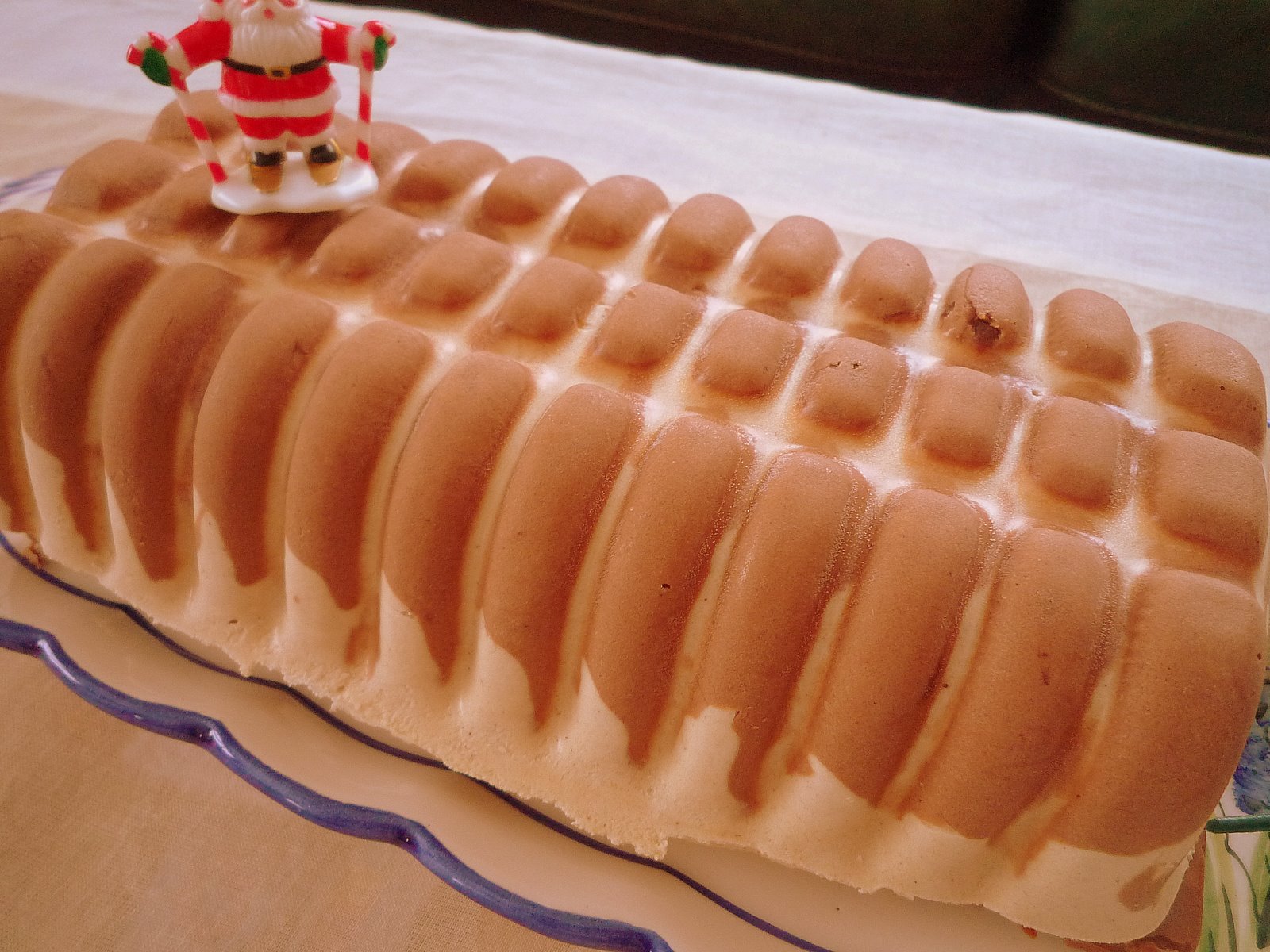 Je me suis inspirée d'une recette du livre "Délices en reliefs" de Guy Demarle, et j'ai utilisé le moule à cake tunisien Flexipan pour réaliser cette bûche pour 12 personnes.